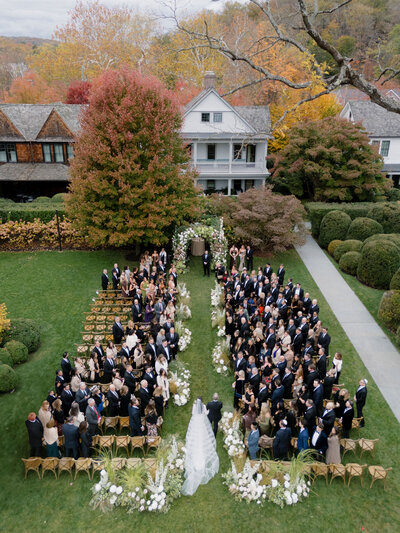 Marissa and Kevin's modern autumn wedding in the Hudson Valley was anything but typical. From their outdoor ceremony, which was held under a stunning floral chuppah with organic, grounded florals lining the aisle to the flower filled reception ceiling and simple but chic table scapes - the design by Sarah Brehant Events featured a color palette of warm neutrals, sage greens and trendy browns for a twist on a classic fall wedding. The couple wanted their tented wedding to not feel like a tent but an elevated experience and Sarah and her team of vendors delivered with a draped entrance, moody lighting, and tree and floral installation. With the live band, guests celebrated the couple into the late hours.